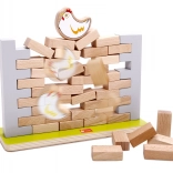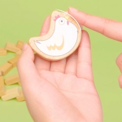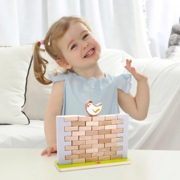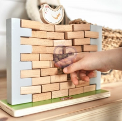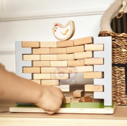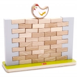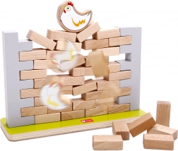 Táto kvalitná drevená balančná hra ponúka jednoduché pravidlá a množstvo napätia. Cieľom je vyberať tehličky z múru tak, aby nespadla sliepka na jeho vrchole. Deti si precvičia trpezlivosť, koncentráciu a riešenie problémov, pričom si užijú zábavu s rodičmi či súrodencami.