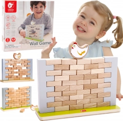 Zábavná a vzdelávacia detská balančná hra od značky CLASSIC WORLD. Postavte z drevených „tehál“ stabilný múr, na vrchol posaďte sliepku a potom postupne vyťahujte tehličky tak, aby sa konštrukcia nezrútila. Hra rozvíja jemnú motoriku, koordináciu ruka–oko, logické myslenie a stratégiu a je skvelá pre deti od 3 rokov aj celú rodinu.