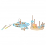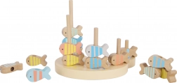 Umiestňujte ulovené rybičky na kolíky podľa farieb, vzorov alebo počtu otvorov. Hra podporuje logické myslenie a prvé počty.
