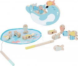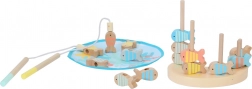 Dve magnetické udice a pestré rybičky s kovovými očkami trénujú presnosť aj koordináciu oko–ruka. Kto uloví viac rybiek z „jazierka“?
