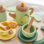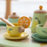 Pastelová paleta zelenej a žltej s pôvabnými citrusovými a kvetinovými detailmi podnecuje predstavivosť a robí zo sady krásny doplnok detskej kuchynky.