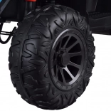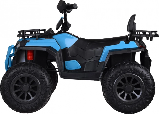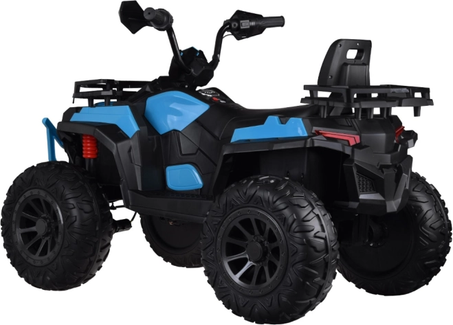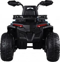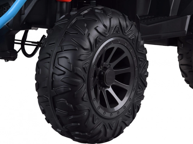 Veľká detská elektrická štvorkolka 4x4 s plynom v rukoväti, 4 motormi 12 V a batériou 12 V 12 Ah ponúka plynulú jazdu vďaka mäkkým kolesám EVA a zadným tlmičom. O skutočný zážitok sa postarajú svetelné a zvukové efekty, komfortné sedlo s operadlom a panel s MP3/USB. Súčasťou je aj 2,4 GHz diaľkový ovládač pre rodičovskú kontrolu.