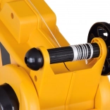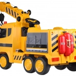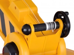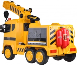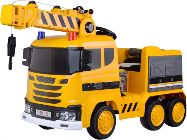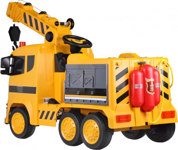 Toto elektrické autíčko žeriav poteší každého malého staviteľa. Realistické pohyblivé rameno s navijakom a hákom ovládate pákou na palubnej doske, lanko možno navíjať ručnou kľučkou. Po naštartovaní zaznie zvuk motora a rozsvietia sa farebné blikajúce svetlá na majákoch aj karosérii. Riadenie je jednoduché vďaka plynovému pedálu a brzde; vozidlo sa zastaví aj po uvoľnení plynu.