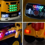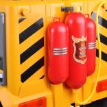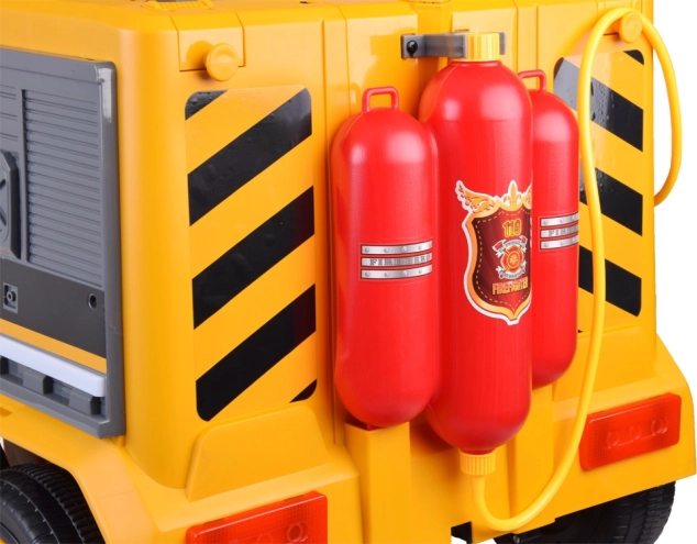 Multimediálny panel ponúka USB a MP3 vstup, prehrávanie vstavaných melódií, ovládanie svetiel a režim hojdania (autíčko samo popojazďuje vpred/vzad). Volant má tlačidlá pre klaksón a zmenu hudby. Pre ešte viac herných scenárov je k dispozícii vodná nádrž s postrekovačom – deti môžu „hasiť požiare“, kropiť stavenisko alebo polievať kvety.