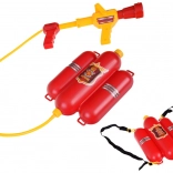 Integrovaný vodný systém s nádržou a striekačkou umožní „hasiť požiare“, čistiť stavenisko či polievať – nekonečná zábava vonku.