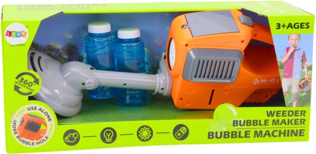Imituje nástroj na kosenie trávy s funkciou vytvárania bublín.
