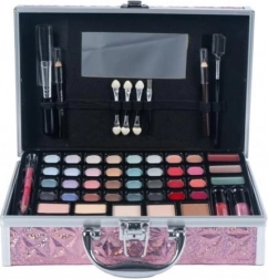 Štýlový ružový kozmetický kufrík s kompletnou výbavou na líčenie pre každodenné aj cestovné použitie. Ponúka 24 očných tieňov, trblietky a lesky na pery, lícenky a púdre, praktické štetce a aplikátory aj zabudované zrkadlo. Pevné prevedenie a prehľadné priehradky zaistia, že budete mať svoju kozmetiku vždy po ruke a perfektne usporiadanú.