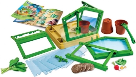 Táto náučná sada deťom jednoducho a zábavne približuje základy botaniky. Priehľadný skleník s nastaviteľnou strechou pomáha regulovať vlhkosť a teplotu, takže je skvelý pre prvé pestovateľské experimenty doma.
