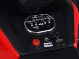 Malé predné a zadné nosiče sa hodia na drobnosti, nápoj alebo desiatu. Multimediálny panel ponúkne predinštalované pesničky, anglické rozprávky, reguláciu hlasitosti aj vstupy USB/Mp3, takže dieťa môže jazdiť za sprievodu obľúbenej hudby. Smer jazdy (vpred/stop/vzad) sa prepína prepínačom, akcelerácia prebieha otočením rukoväte plynu a brzdenie uvoľnením plynu alebo stlačením nožnej brzdy.