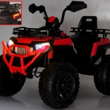 Táto výkonná detská štvorkolka je stvorená na dobrodružstvá. Veľké mäkké kolesá EVA, zadné tlmiče a pohodlné sedadlo s operadlom zabezpečujú stabilitu a komfort aj na nerovnom povrchu. Štart prebieha tlačidlom, sprevádzaný zvukom motora a automatickým rozsvietením predných aj zadných svetiel.