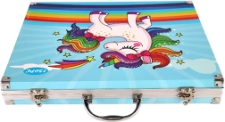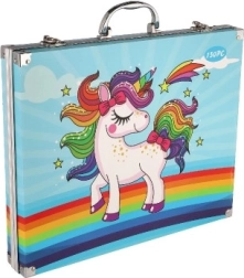 Tento kufrík zaujme svojím veselým dizajnom s jednorožcom a dúhovou hrivou a chvostom, čo ho robí ideálnym pre malých umelcov.