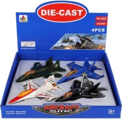 Objavte svet nekonečných leteckých dobrodružstiev s kovovými a plastovými stíhačkami, ktoré očaria každého malého nadšenca lietadiel. Táto sada obsahuje štyri stíhačky rôznych farieb a každá o dĺžke 16 cm.