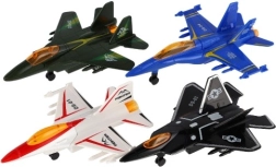 Táto sada obsahuje štyri stíhačky v rôznych farbách - modrá, čierna, zelená a biela, ktoré prinášajú rozmanitosť do detských hier.