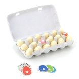 - 18 kariet v tvare vajíčka s rôznymi symbolmi a farbami