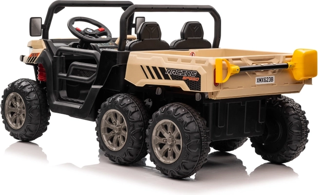 - Praktičnosť: 6 kolies pre stabilitu, elektrický kiper na prevoz hračiek, lístia či drobností