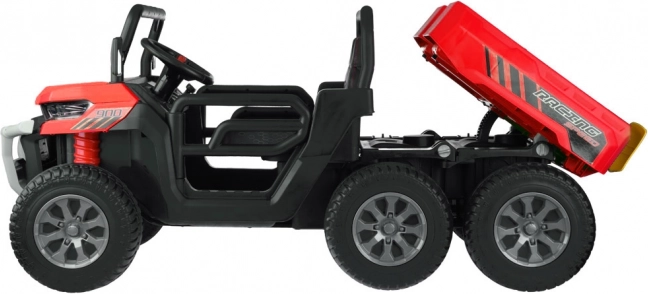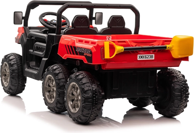 Robustné detské elektrické auto s pohonom 4x6, dvomi sedadlami a elektrickou vyklápacou korbou pre malých pomocníkov. Ponúka 4 silné motory 24V/75W, mäkké EVA kolesá, plynulý rozjazd, odpruženie, LED osvetlenie aj rodičovský diaľkový ovládač 2,4 GHz pre bezpečnú jazdu na záhrade aj dvore.