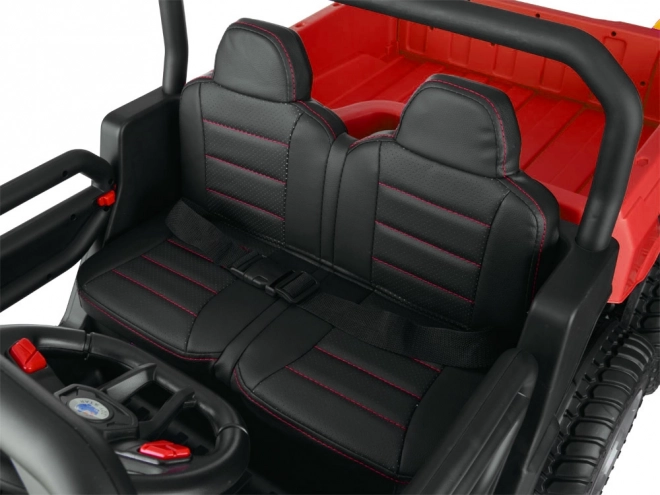 Dvojsedadlo z eko kože s bezpečnostným pásom a realistickým volantom poskytne pohodlie aj istotu pri jazde.