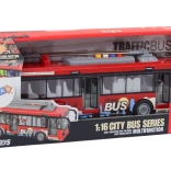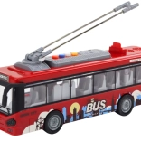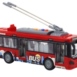 Realistický červený trolejbus v mierke 1:16 poteší malých milovníkov MHD. Ponúka svetelné a zvukové efekty, frikčný pohon na jazdu po postrčení, otváracie dvere a pohyblivý zberač prúdu. Robustné spracovanie zaisťuje odolnosť a bezpečnú hru.