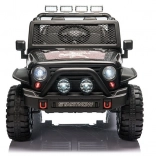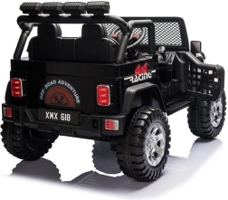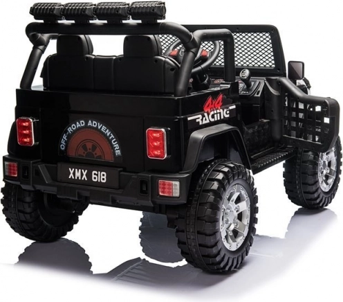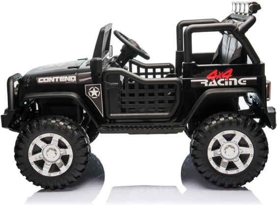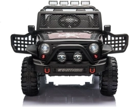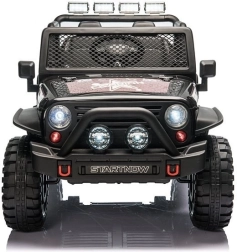 Objavte moderné detské elektrické autíčko s atraktívnym off-road vzhľadom a výraznými prvkami, ako sú masívne pneumatiky, predný ochranný nárazník a svetelná rampа. Čierne prevedenie pôsobí elegantne a zároveň športovo, takže zaujme na prvý pohľad.