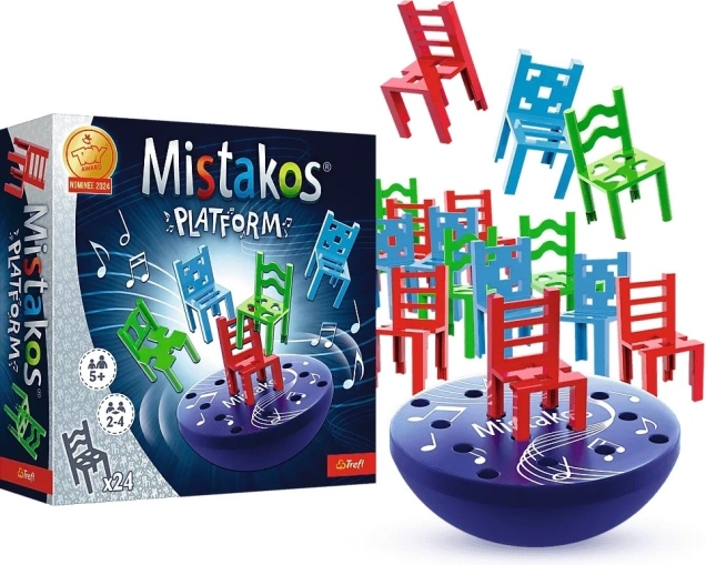 Hra Mistakos je majstrovskou skúškou vašich reflexov stvorenou nielen pre deti, ale aj dospelých. Elektronická platforma vás vtiahne do hry s doprovodnou hudbou a rotovaním, pričom sa snažíte pridať svoje stoličky bez strhnutia tých ostatných. Cieľom je rýchlo sa zbaviť všetkých svojich stoličiek a stať sa víťazom!