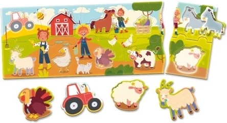 Puzzle pre najmenších, navrhnuté pre rozvoj základných zručností detí vo veku 1-4 roky. Zložitý obrázok farmy prináša radosť a zábavu.