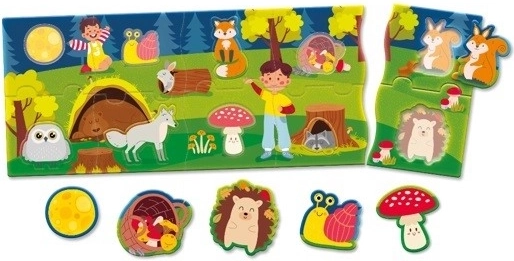 - Puzzle obsahuje pestré obrázky lesa, ktoré inšpirujú a stimulujú detskú predstavivosť.