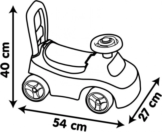 Bezpečnosť zaisťujú protivýklopné výstupky proti prevráteniu dopredu aj dozadu, stabilné protišmykové kolieska a pevná konštrukcia z kvalitného plastu. Deti si zamilujú skutočný volant s klaksónom a rodičia ocenia jednoduchú manipuláciu aj údržbu.