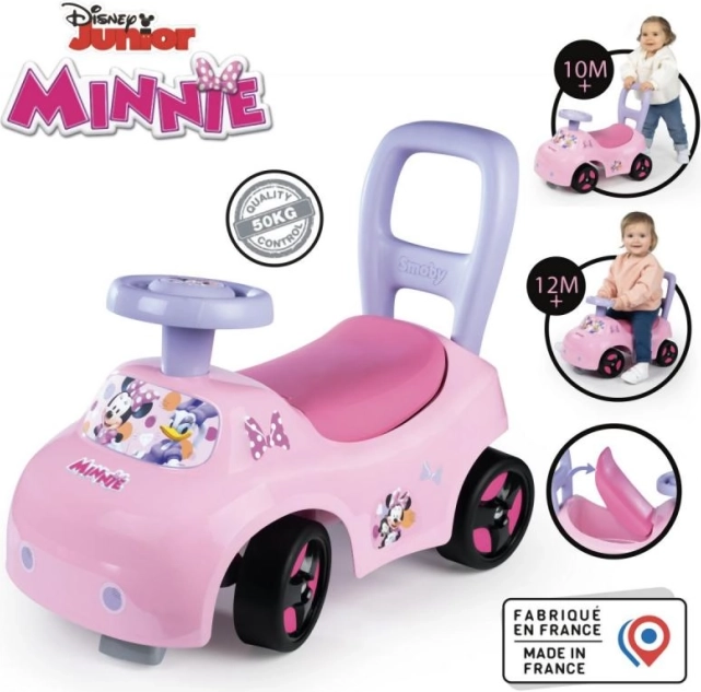 Roztomilé odrážadlo s motívom MINNIE poteší každú malú vodičku. Ľahká a stabilná konštrukcia, funkcia 2v1 – chodítko aj odrážadlo, pohodlná opierka chrbta a praktická schránka pod sedadlom. Nechýba ochrana proti preklopeniu pre bezpečné prvé krôčiky aj jazdu.