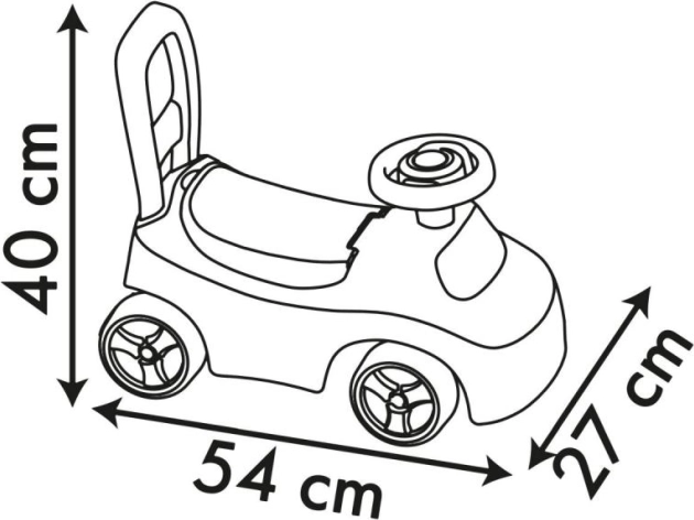 Praktická úložná schránka pod výklopným sedadlom pojme drobné hračky či poklady malého cestovateľa. Volant s klaksónom podnecuje hru, tichý chod kolies je vhodný aj do interiéru. Ľahká plastová konštrukcia sa ľahko prenáša a odolá každodennému používaniu.