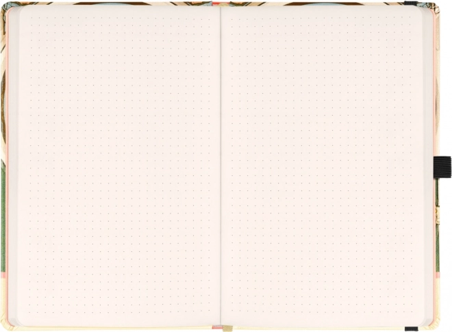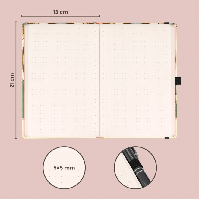 Štýlový bodkovaný zápisník NOTIQUE s umeleckým motívom Alfonza Muchu je ideálny na každodenné poznámky, plánovanie aj kreatívne zápisky. Pevné dosky chránia obsah, elastická gumička udrží všetko pohromade a praktické pútko umožní mať ceruzku vždy po ruke.