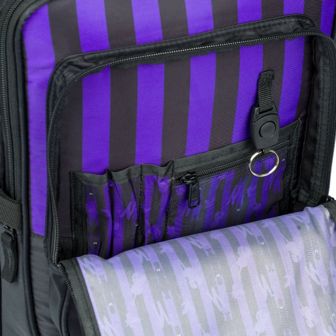 Školský batoh CUBIC WEDNESDAY kombinuje výrazný dizajn v čierno‑fialových pruhoch s premyslenou ergonómiou pre každodenné pohodlie. Vďaka plne nastaviteľným ramenným, prsným a bočným kompresným popruhom batoh ľahko prispôsobíte postave, zatiaľ čo priedušný chrbát uľahčuje nosenie aj pri plnom zaťažení.