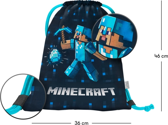 Štýlové vrecko MINECRAFT Blue Axe je ideálne do školy, na krúžky aj voľnočasové aktivity. Vďaka odolnému a umývateľnému materiálu vydrží každodenné používanie a ľahko sa udržiava v čistote. Pevné sťahovacie šnúrky slúžia zároveň ako ramenné popruhy, takže môžete vrecko pohodlne nosiť na chrbte.