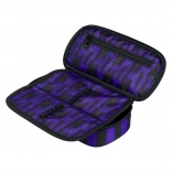 Súprava Cubic Wednesday obsahuje štýlový batoh, praktický peračník a vrecko na obuv, všetko v modernom dizajne s čiernymi a fialovými pruhmi. Batoh je navrhnutý tak, aby spĺňal ergonomické požiadavky, zatiaľ čo peračník a vrecko zabezpečujú organizáciu školských pomôcok a voľnočasových aktivít.
