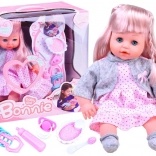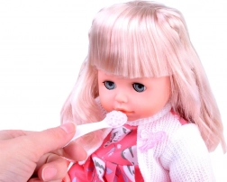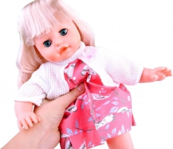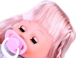 Táto bábika s dlhými blond vlasmi a roztomilým ružovým oblečkom má mäkké telíčko ideálne na mojkanie. Po uložení zatvára oči, čo dodáva hre na reálnosti. Vďaka dodaným doplnkom deti rozvíjajú jemnú motoriku, empatiu a predstavivosť.