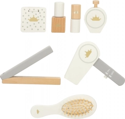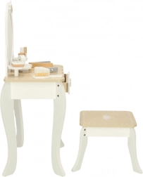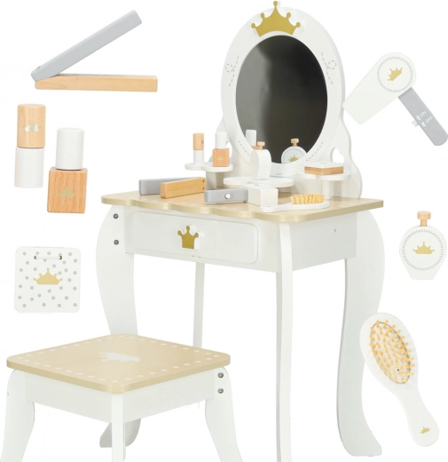 Toaletka je vybavená veľkým, okrúhlym zrkadlom a policami a zásuvkou na kozmetické príslušenstvo, vrátane praktickej stoličky. K dispozícii sú také príslušenstvá ako hrebeň, sušič vlasov, žehlička na vlasy, paletka očných tieňov, parfum, lak na nechty a rúž. Všetky kozmetické doplnky sú atrapy, takže nehrozí neporiadok.