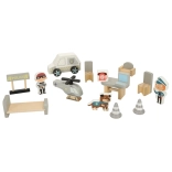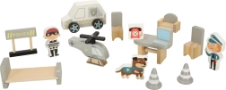 Súčasťou je policajné auto, helikoptéra, pes, policajt aj zlodej, dopravné kužele a nábytok pre detailné príbehy.