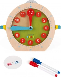 Objavte zábavný spôsob, ako sa deti naučia spoznávať čas: drevené hodiny JANOD so stierateľnými kartami a dvomi fixami. Vďaka jasným čísliciam, plynulo nastaviteľným ručičkám a praktickým kartám na zápis si deti hravou formou precvičia čítanie hodín, vnímanie času aj jemnú motoriku. Súčasťou je spolu 14 kariet a 2 fixy. Výučbové hodiny pre deti od 3 rokov, plynulo nastaviteľné ručičky, stierateľné karty na opakované použitie.