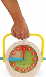 Veľké a prehľadné ručičky z dreva sa plynulo pohybujú, takže si deti ľahko nastavia ľubovoľný čas a lepšie pochopia jeho plynutie.