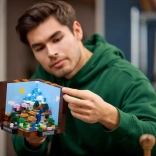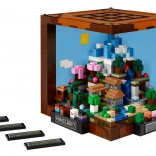 Model vychádza z legendárneho pracovného stola z hry Minecraft a prináša bohatý svet do kompaktnej, výstavnej kocky. Vo vnútri nájdete päť oddeliteľných minimodulov, ktoré spolu predstavujú 12 rozmanitých biomov – od tajgy a bujnej jaskyne až po ľadové ihly a Temnotu. Vďaka 8 mikrofigúrkam (Steve, Alex, kostlivec, čarodejnica, Creeper, dedinčan, krava a prasa) ľahko vytvoríte ikonické scény.