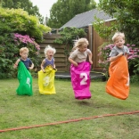 Obsah balenia: 4 skákacie vrecia 70 × 50 cm, 4 lyžičky, 4 vajíčka, 10 pohárikov, 4 hádzacie vrecúška, 4 kolíčky, štartová a cieľová čiara.
