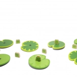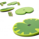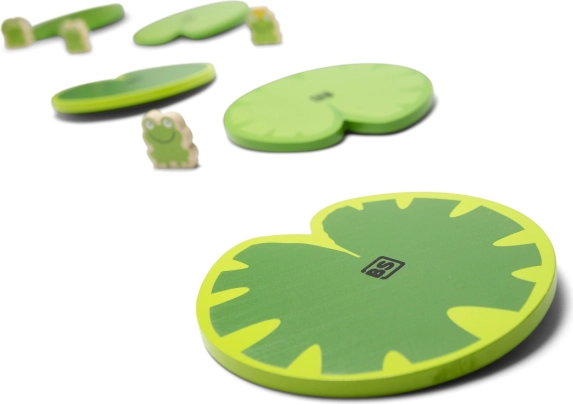 Hra je určená pre 1–4 hráčov od 3 rokov. Úlohou je bezpečne preskákať cez všetky lekná až na koniec a pritom pozbierať žabky – ale pozor, cesta je vratká! Vďaka variabilnému rozmiestneniu prvkov ľahko nastavíte náročnosť, takže si zahrajú začiatočníci aj malí akrobati.