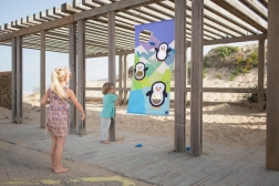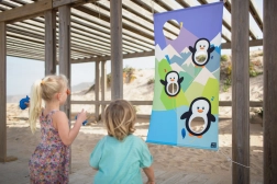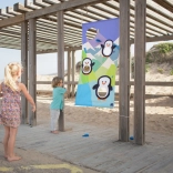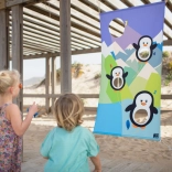 Premeníte záhradu, ihrisko alebo park na arénu plnú smiechu a pohybu. Farebné plátno s tučniakmi ľahko pripevníte povrazmi ku stromu či konštrukcii a deti môžu začať hádzať mäkké „ryby“ do pripravených otvorov. Hra prirodzene rozvíja presnosť, trpezlivosť a tímovú spoluprácu.