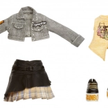 Výrazná oranžová hriva vo vrkočoch, denimová bunda s nášivkami a platformové topánky s nápisom RAINBOW robia z Clementine hviezdu každej kolekcie.