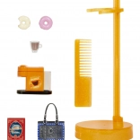 Kabelka, hrebeň, stojanček, pohárik a sladké dobroty, k tomu štýlový „Sparkle Brew“ kávovar – všetko pre parádne scény z módneho dňa.