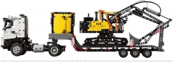 Objavte autentické stavebné stroje v mierke, ktoré potešia každého fanúšika techniky. Nákladné vozidlo VOLVO FMX ponúka otváracie dvere a vyklápaciu kabínu, pod ktorou sa ukrýva realistický šesťvalcový motor s pohyblivými piestami. Príves s plochou plošinou má sklopné nájazdové rampy pre hladké naloženie rýpadla EC230.