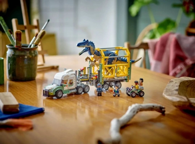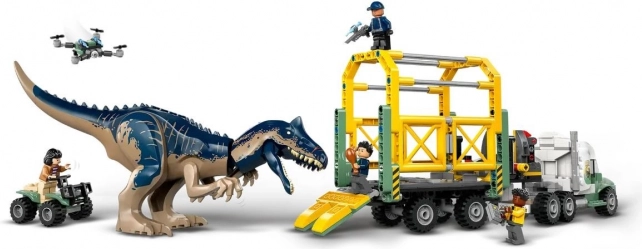 Vďaka sade Dino misia: prepravné vozidlo pre allosaura (76966) čakajú na deti od ôsmich rokov nové a nečakané zvieracie dobrodružstvá. Táto dinosauří sada LEGO Jurský svet je skvelým darčekom na detské oslavy a inšpiruje k hraniu rolí. Umožňuje deťom rozprávať najrôznejšie príbehy a obsahuje odlievanú figúrku allosaura s pohyblivými nohami, hlavou a otváracou tlamou, ako aj minifigúrky Daria, Kenjiho, Yaz a strážcu. Sada obsahuje príves s otváracou strechou a kapotou, kabínu s priestorom pre tri minifigúrky s nákladným priestorom, príves s klietkou s prednými podperami a otváracou zadnou rampou, otváraciu klietku s pákou, štvorkolku a dron a množstvo ďalších doplnkov, ktoré podnecujú vymýšľanie príbehov.