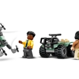 - Motivačná hra – medzi ďalšie doplnky patrí dron, uspávacie šípky a pištoľ, takže táto sada z Jurského sveta je ideálna na prehrávanie napínavých únikových príbehov a chytanie dinosaura