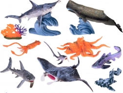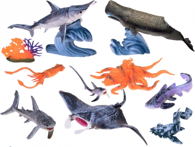 V balení nájdete mantu, vorvaňa, žraloka kladivohlavého, chobotnicu, kalmára, viaceré typy žralokov, koral a dvojicu vĺn na vytváranie scén.