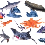 Táto rozmanitá sada zahŕňa ikonických obyvateľov oceánov – od majestátnej manty a impozantného vorvaňa až po žraloka kladivohlavého, chobotnicu, kalmára a ďalšie druhy žralokov. Figúrky majú realistickú textúru a presné sfarbenie, čo podporuje prirodzenú zvedavosť detí a rozvoj poznávania prírody.