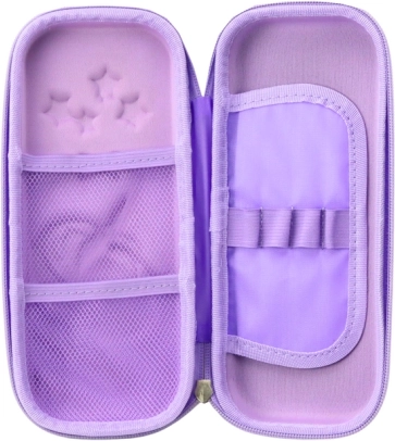 Vo vnútri nájdete premyslené členenie: dve priestranné sieťované vrecká na drobnosti a 6 elastických úchytov na ceruzky, pastelky alebo fixky. Peračník je dodávaný v priehľadnom ochrannom obale – vhodné na bezpečné skladovanie aj darčekovú prezentáciu.